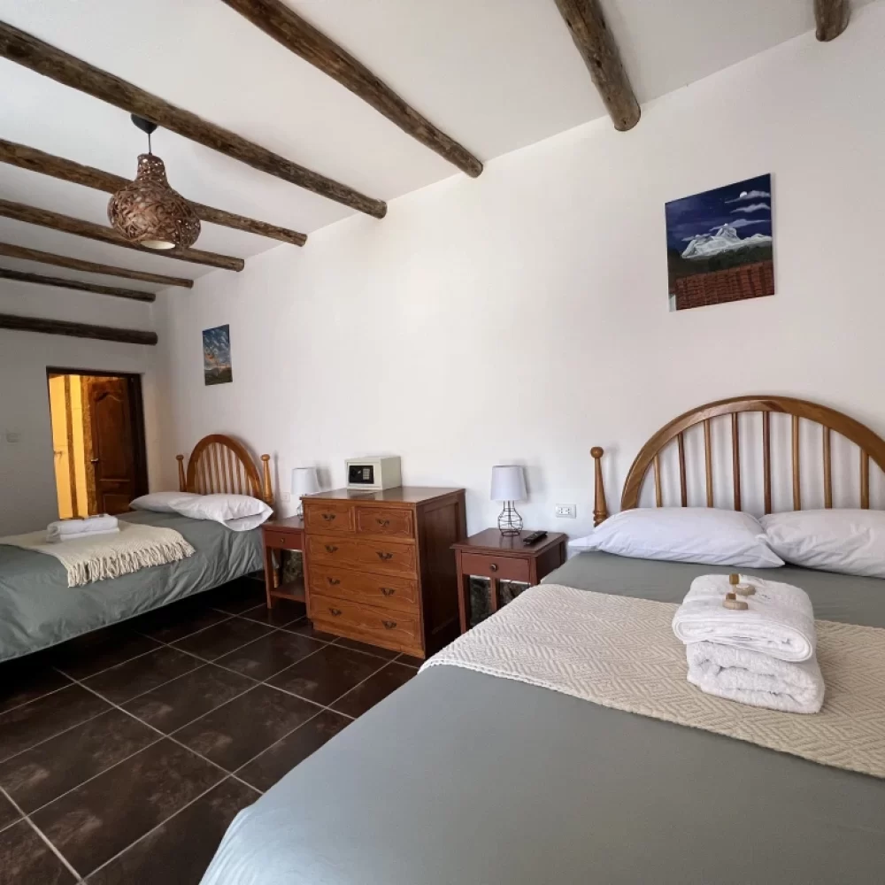 The Double or Twin rooms have a double bed, duvet covers and anti-allergy blankets, cable TV, WIFI, safe, private bathroom.